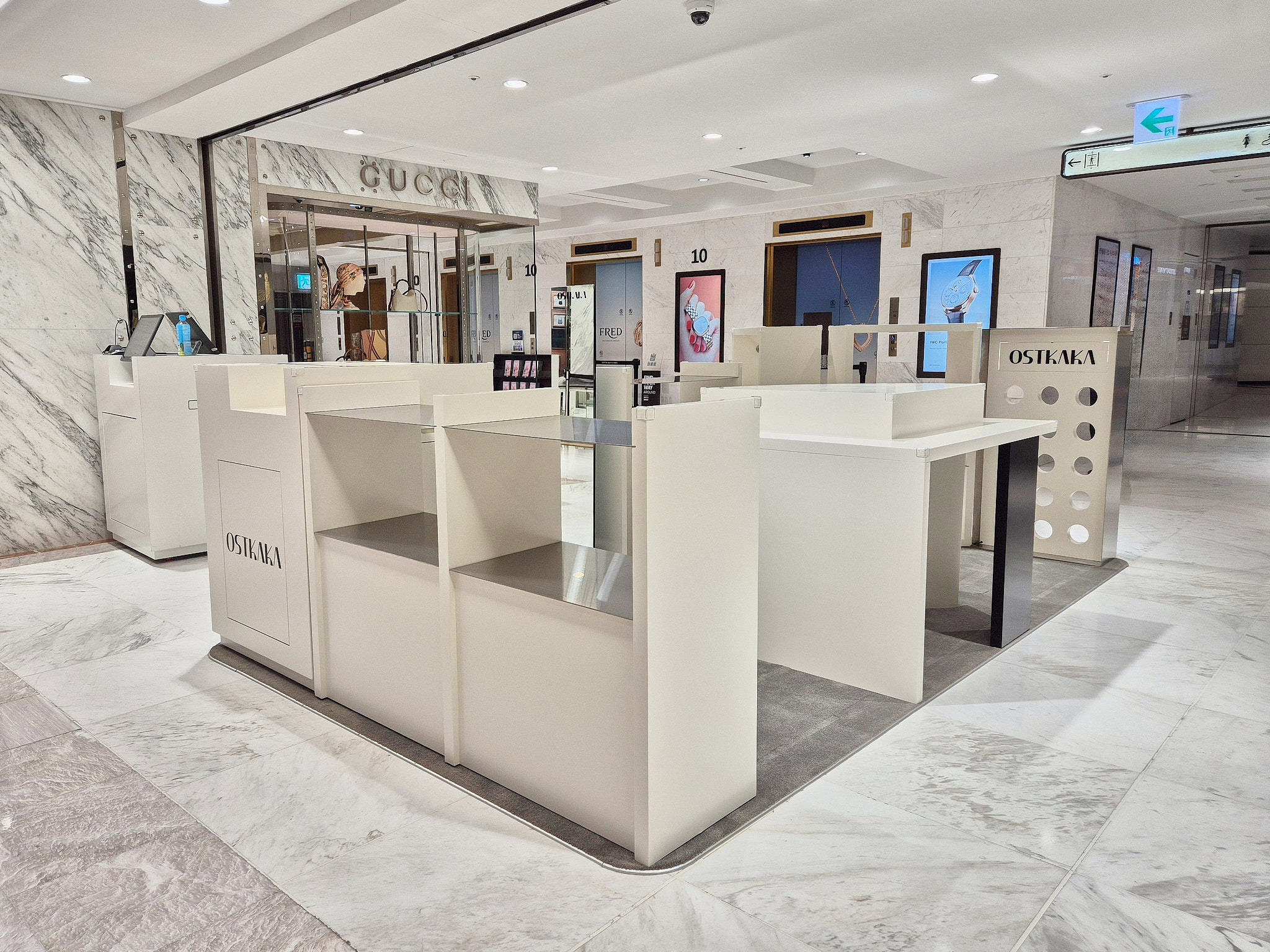 오스트카카의 치즈케이크 재료의 레이어 감을 형태의 레이어, 소재의 레이어로 디자인한 팝업