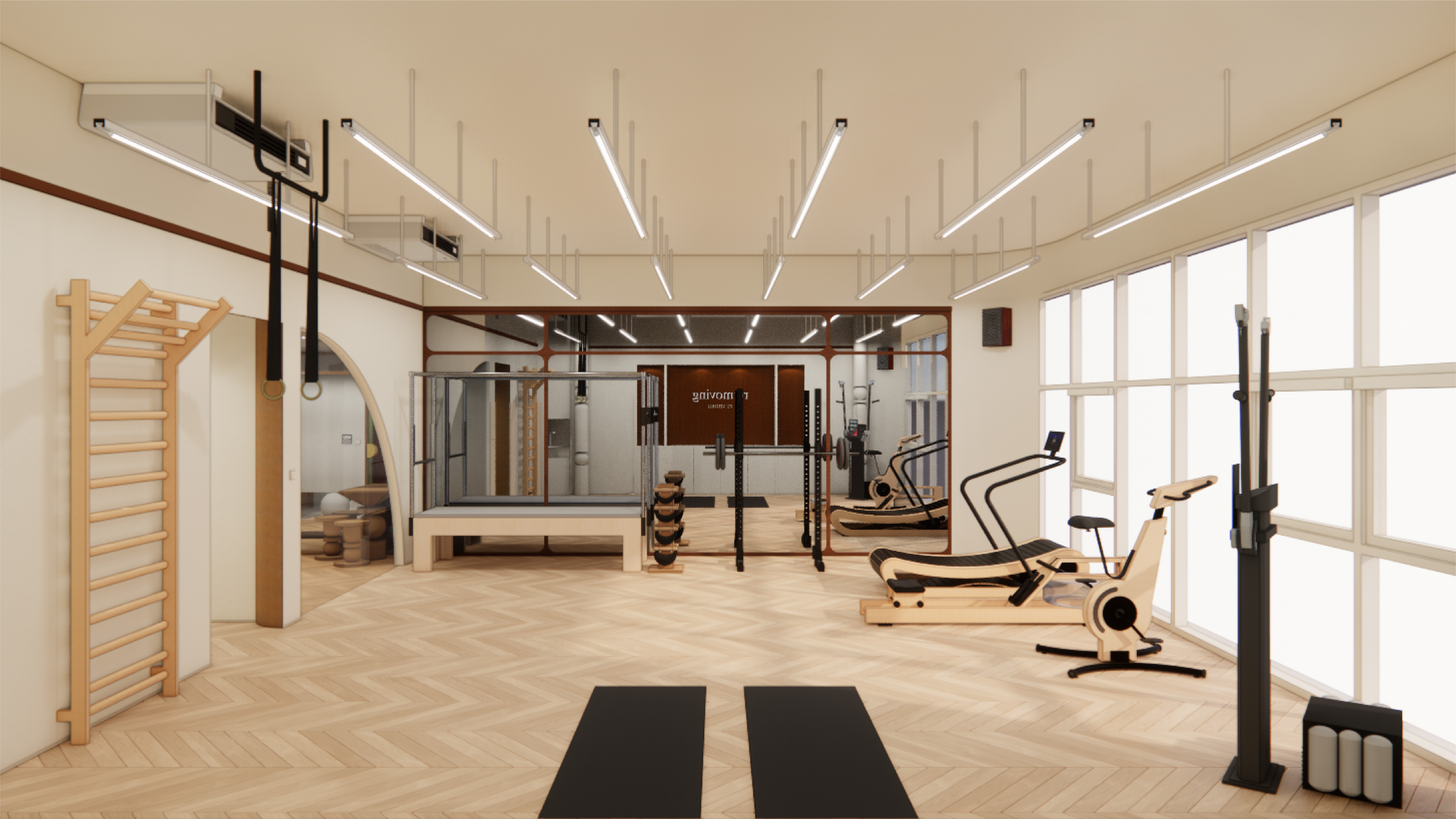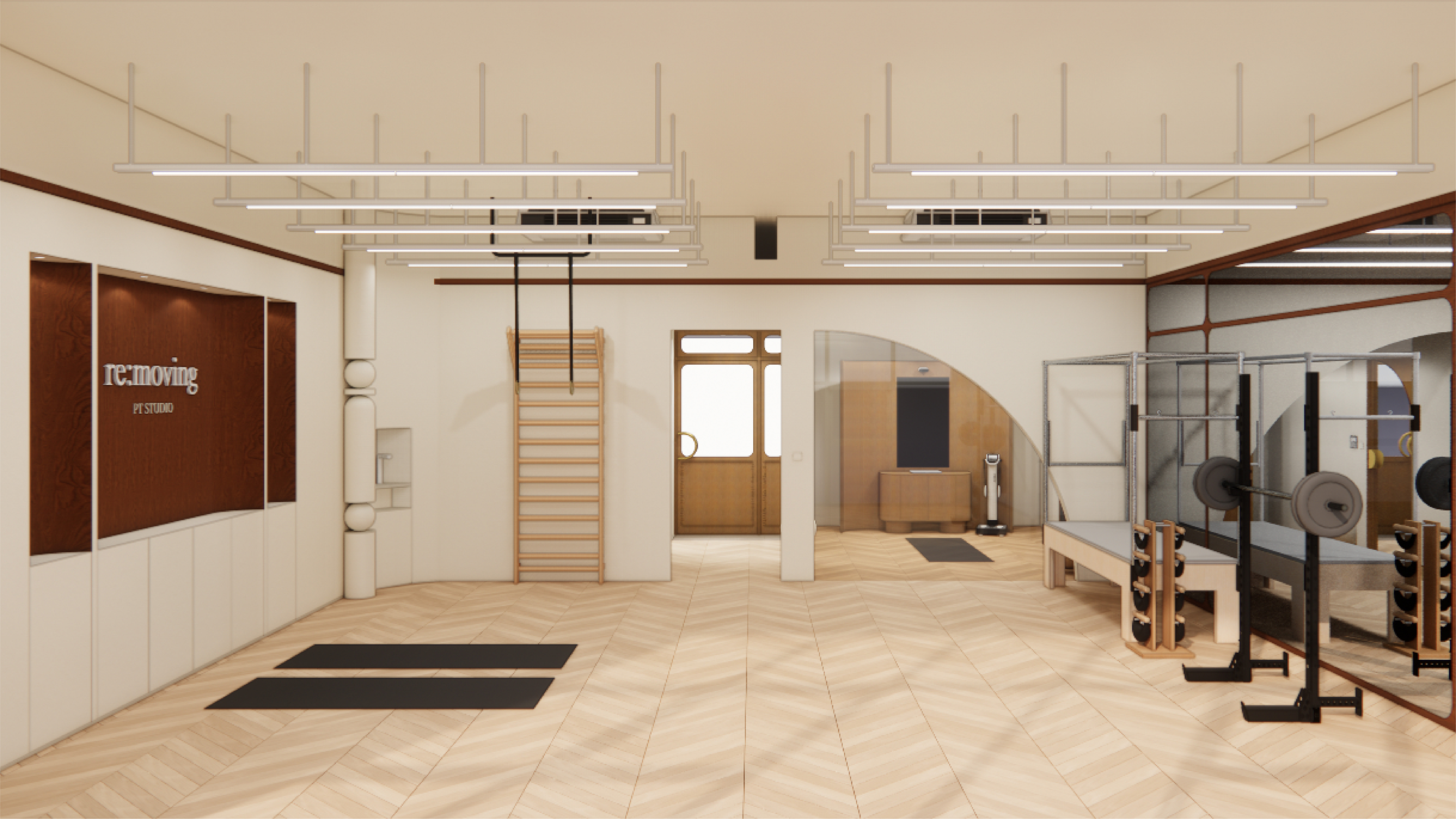 리무빙 서큘레이션 공간의 유려한 곡선이 입구부터 운동공간까지 점진적으로 곡선의 디자인으로 이루어지도록 디자인